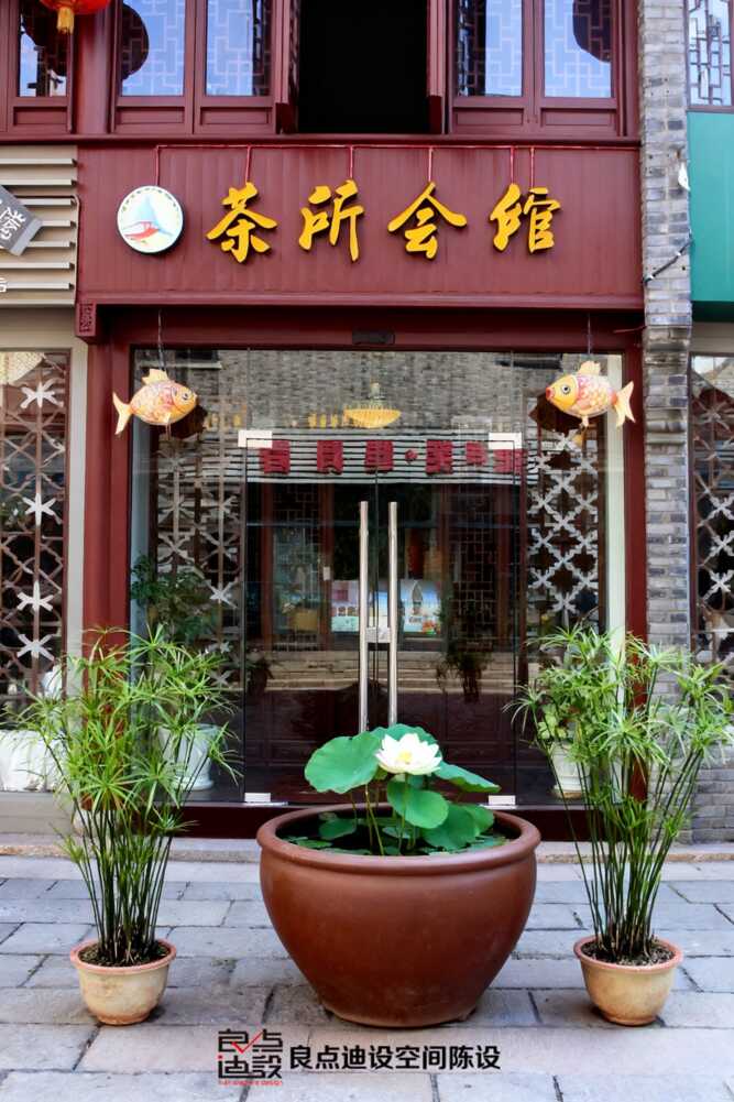 深紅色調打底,配上燙金大字"茶所會館"。傳統(tǒng)又不失氣勢,路過都忍不住多看兩眼。門口那對魚形掛飾太靈動了,寓意吉祥還超有辨識度。
