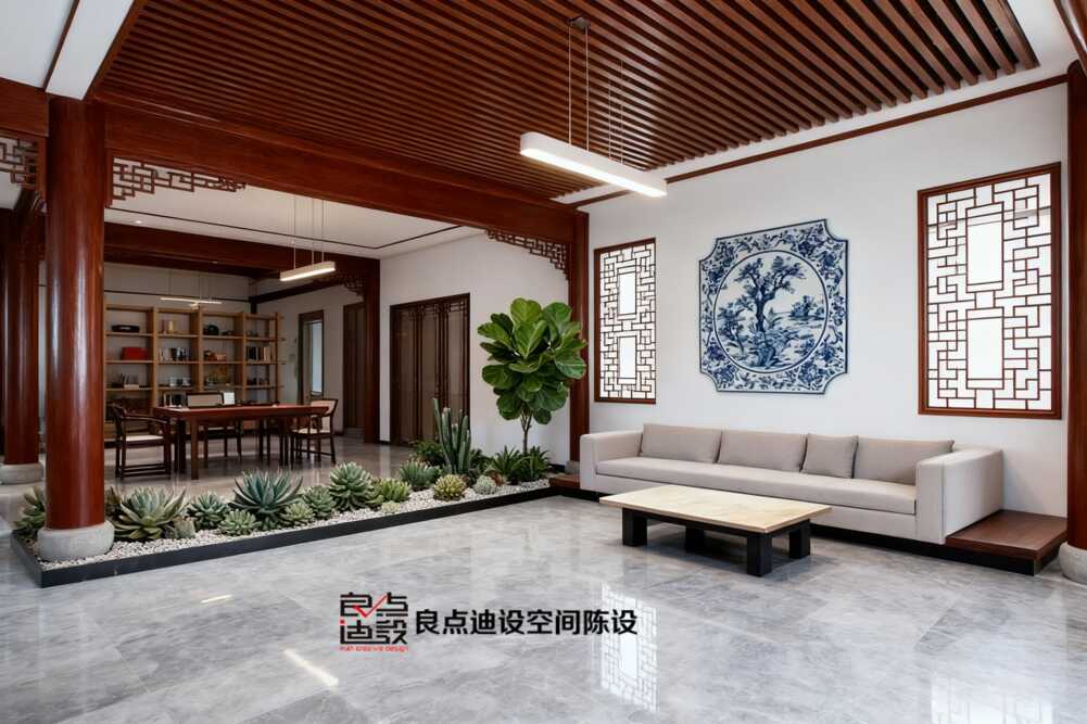 新中式茶館 #商業(yè)空間設(shè)計 #茶館軟裝 #博古架陳列 #良點設(shè)計
