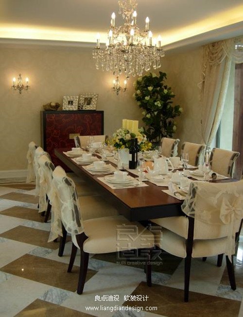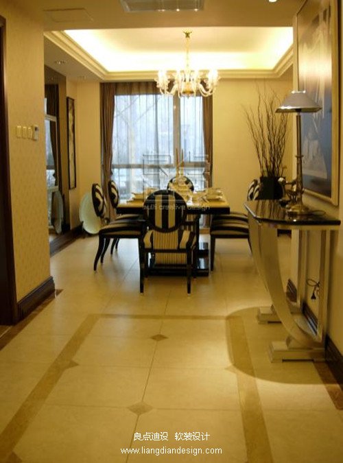 本案運用新古典風格,新古典風格是將懷古的浪漫與現(xiàn)代人對生活需求的相結合,兼容華貴典雅與時尚現(xiàn)代,反映出后工業(yè)時代個性化美學觀點和文化品味,在家具配飾上色彩典雅,造型上保留傳統(tǒng)的文化底蘊,同時摒棄了過于復雜的機理和裝飾,沙發(fā)素雅的布面與柔美的線條結合,營造出一個即優(yōu)雅又愜意的空間,黑白搭配的餐桌餐椅使餐廳彰顯大氣,精致的餐具花藝點綴出細膩優(yōu)雅,書房運用三彎腿描銀書桌使空間彰顯華貴風范,臥室運用柔和米色棉麻質地并搭配同色系靠包,使人感受自然舒適。