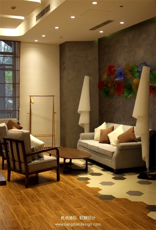 在軟裝設計中將山水的大自然靈性融入空間中,使其翔動一種源自自然的藝術氛圍,山水、竹子、流沙、雨花石、綠植及原木等這些元素運用其中,使整個空間一步一景,一份寧靜的北歐風情。裝飾材料主要有木材、石材、玻璃和鐵藝等,都無一例外地保留這些材質的原始質感。它所呈現出來的是非常接近自然的原生態(tài)的美感,沒有一點多余的裝飾,一切材質都袒露出原有的肌理和色澤。