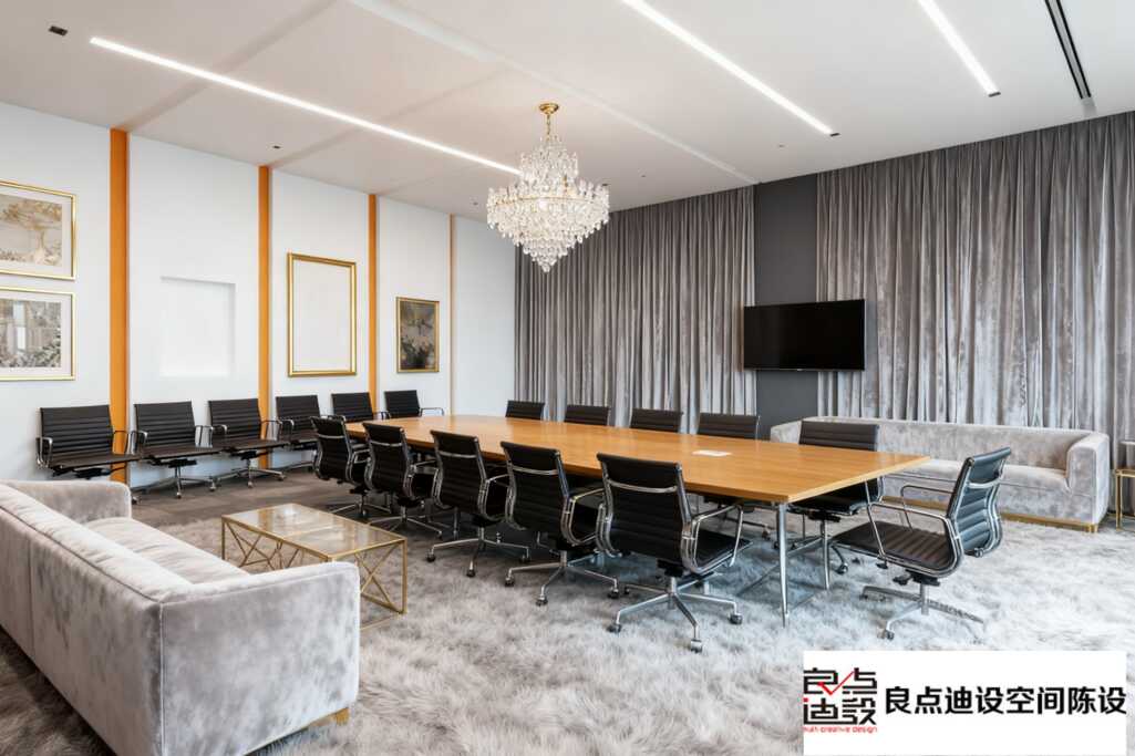 質(zhì)感會(huì)議空間: 長(zhǎng)條巖板會(huì)議桌+皮質(zhì)會(huì)議椅(帶金屬腳)+特色吊燈。墻面掛大幅抽象畫或質(zhì)感木飾面,開會(huì)都變高級(jí)。
