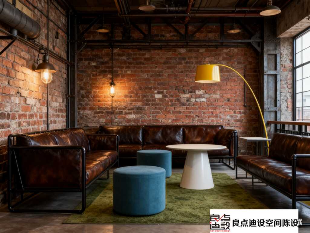 ?? 1. 軟裝C位搭配:金屬+皮革+木紋YYDS! * 金屬元素: 別只盯著水管燈!* 皮質(zhì)沙發(fā)/單椅: 休息區(qū)、老板椅安排上!棕色、墨綠皮質(zhì)是工業(yè)風(fēng)的靈魂伴侶,一擺進(jìn)去,復(fù)古摩登那味兒就有了!磨砂皮更顯高級(jí)。 * 溫潤木紋中和: 工業(yè)風(fēng)太硬?原木色桌面、開放木格書架了解一下!淺木色能瞬間注入自然暖意,平衡水泥灰的清冷感。 選有做舊紋理的,別整太光滑!