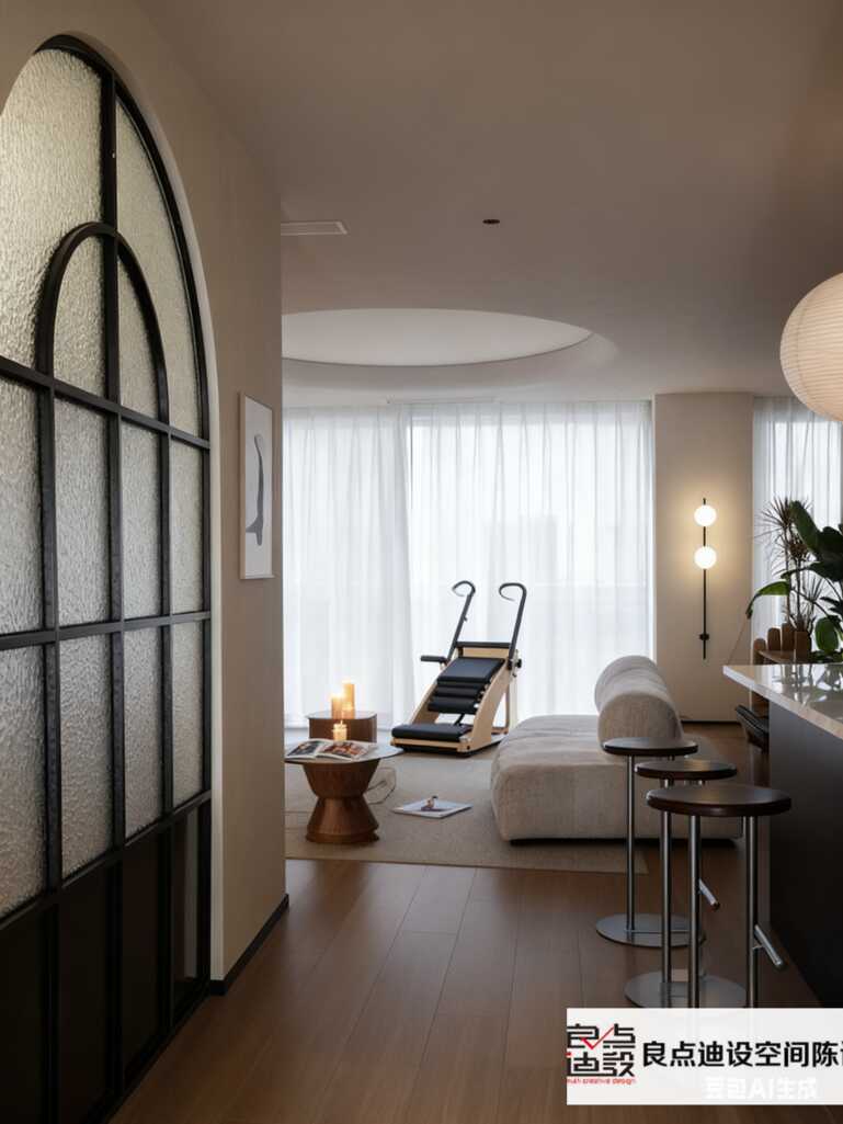 普拉提裝修靈感 #居家健身空間 #良點迪設案例 #拱形門設計 #軟裝搭配