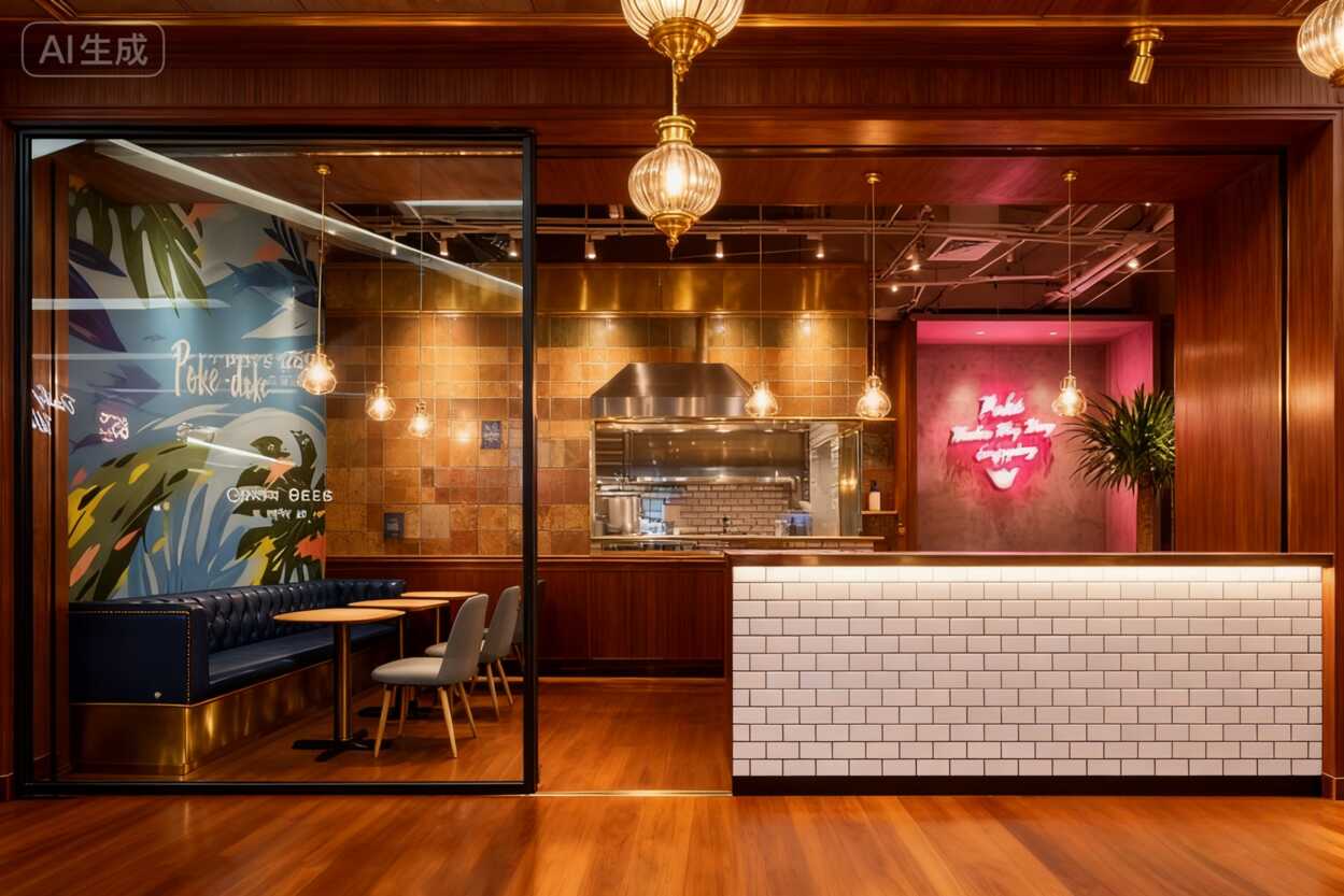 絕了!Poke-d餐廳把海邊度假風(fēng)搬進(jìn)室內(nèi),工業(yè)風(fēng)+海洋元素混搭太可了