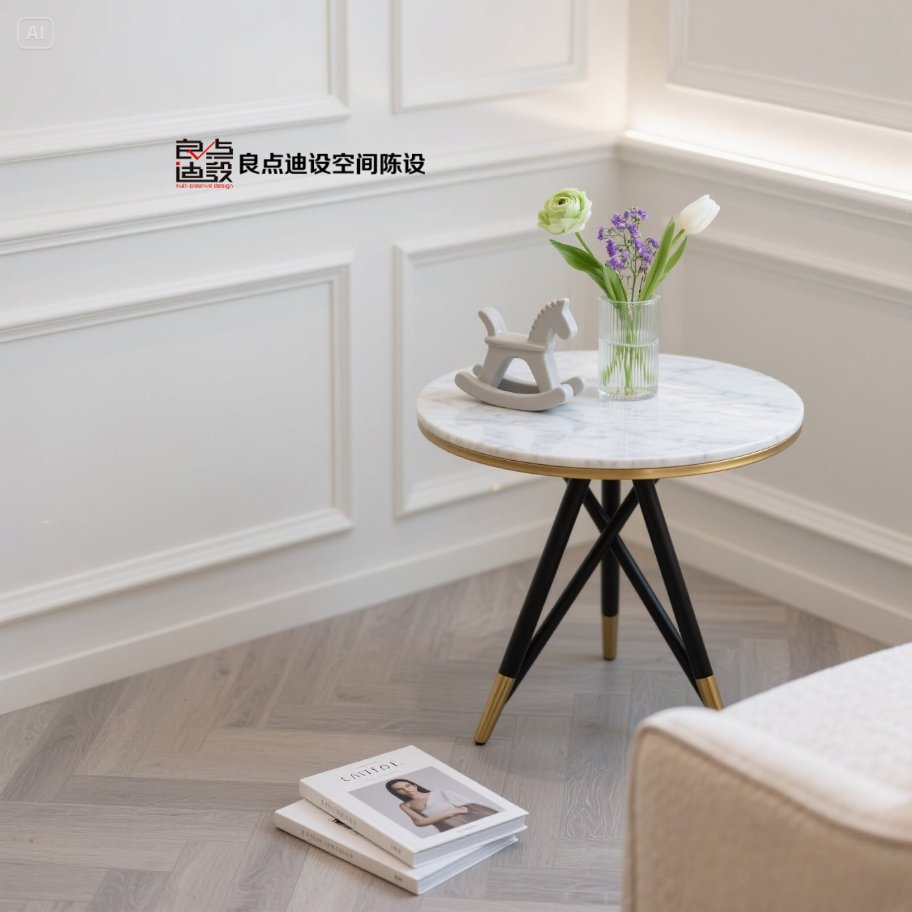 就拿圖里這個(gè)小角落來(lái)說(shuō)吧,一張精致的小圓桌,大理石的桌面搭配黑色金屬的桌腿,再加上金色的點(diǎn)綴,高級(jí)感這不就來(lái)了嘛!桌上插著幾支清新的花,旁邊還有個(gè)可愛(ài)的小擺件,細(xì)節(jié)滿滿~