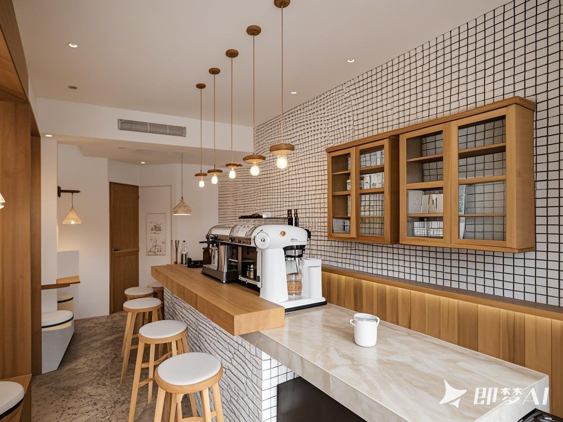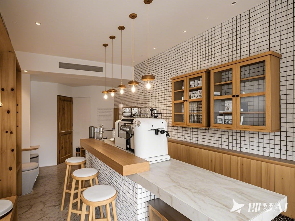 3米長的吧臺(tái)暗藏玄機(jī):面向顧客的臺(tái)面用溫潤木紋,咖啡師操作區(qū)直接上冷感大理石。這波操作既保持操作臺(tái)耐用性,又能讓客人摸到木頭紋理,細(xì)節(jié)控狂喜!