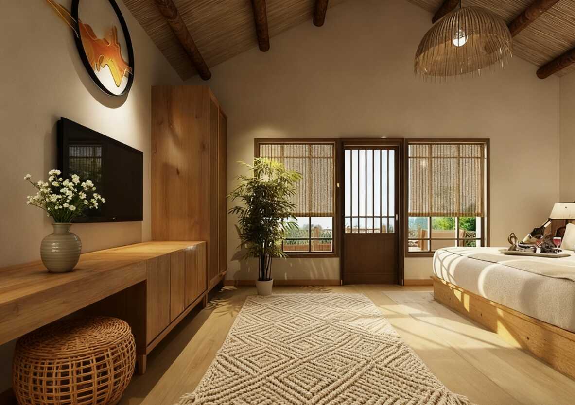 而且這種森系民宿,軟裝肯定會用很多自然元素的小擺件,比如干花、樹枝做的裝飾,或者是手工感十足的陶藝品,既呼應(yīng)了庭院的自然風(fēng),又能給住客一種“住進(jìn)自然里”的沉浸感~