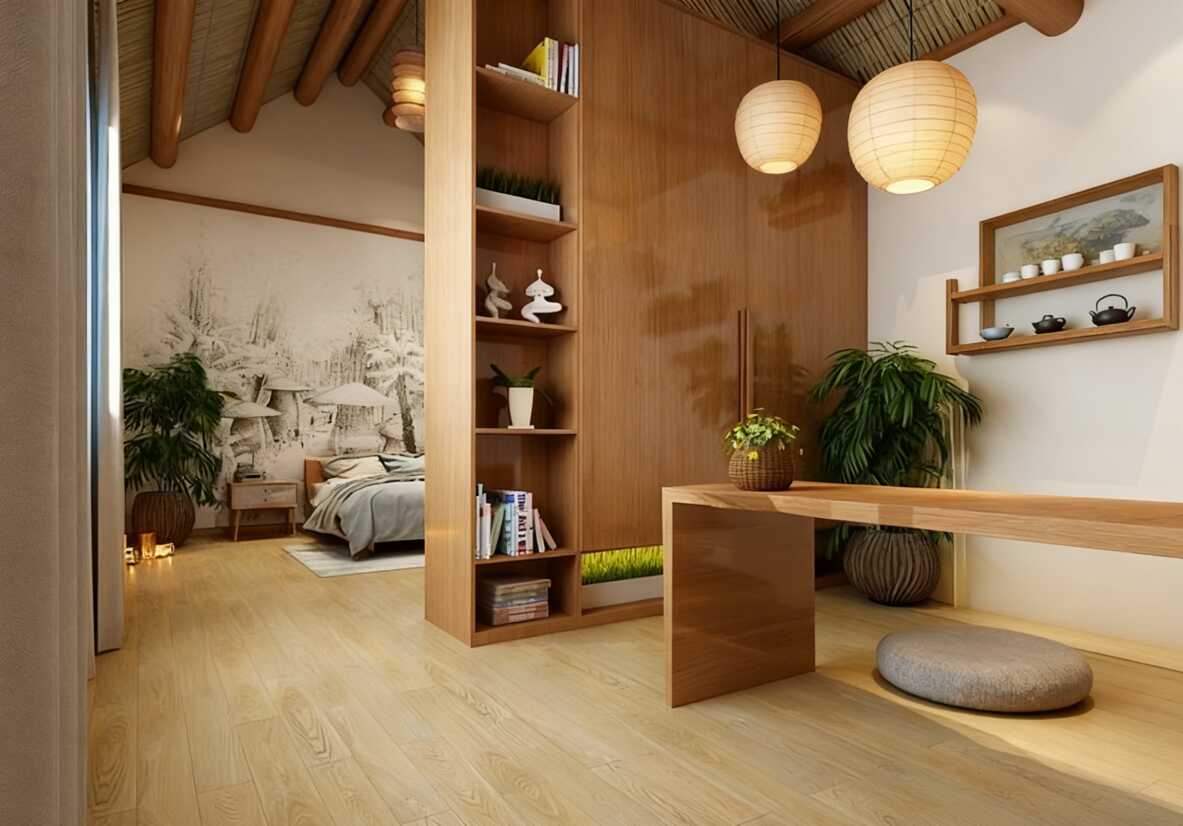 日式禪意民宿軟裝絕了!木質(zhì)隔斷 + 茶器墻 + 紙燈,住進來就像躲進了深山禪院