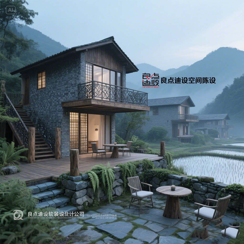 出圈民宿軟裝設計秘?灰磚木紋配云霧山景也太絕了吧!