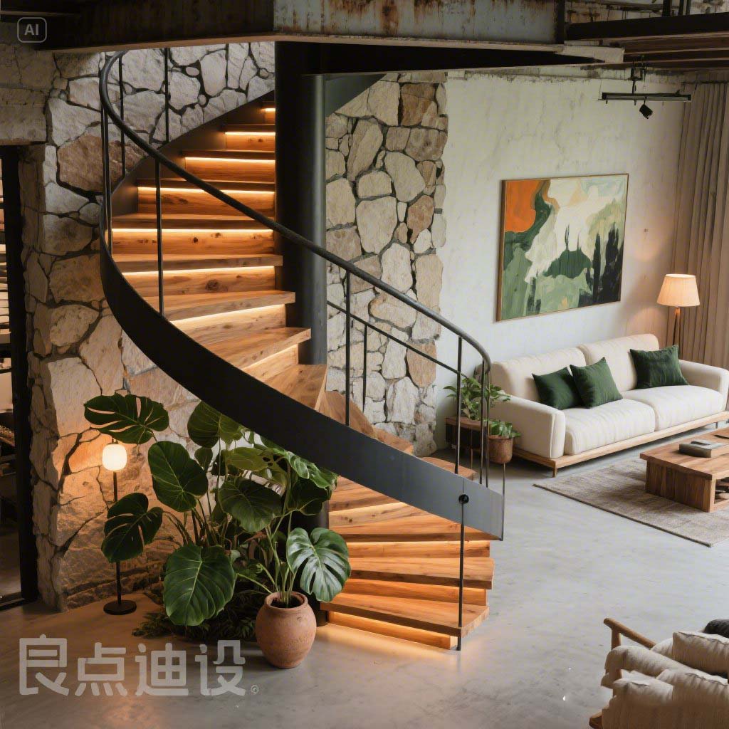 民宿軟裝設(shè)計氛圍感天花板被我找到了!螺旋樓梯+暖光石墻原地封神