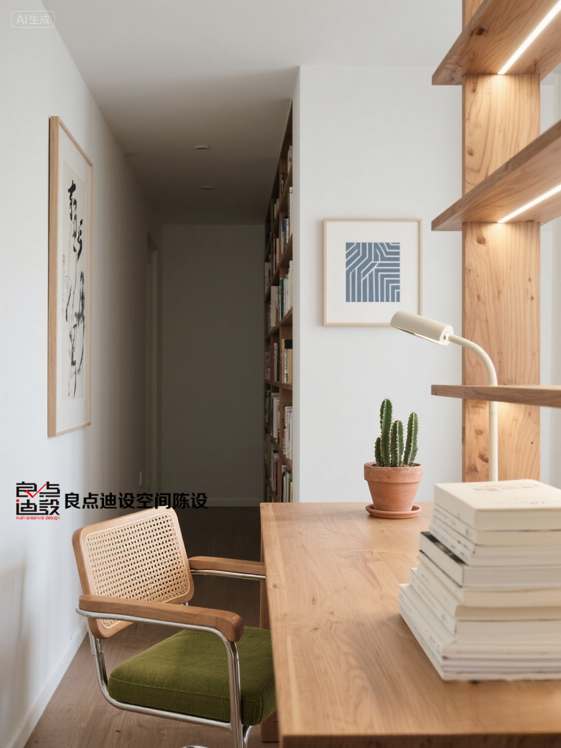 屋主家采光非常好,兩面都是窗,于是我們保留了書桌的窗戶封閉了朝西面的玻璃,把窗戶做成圓形并且內(nèi)嵌了日夜簾,造型上呼應(yīng)了可愛的弧形元素,同時(shí)也讓家里光線相對(duì)更集中。學(xué)習(xí)寫字的地方亮,睡覺(jué)休息的地方更靈活調(diào)整光線強(qiáng)弱。
