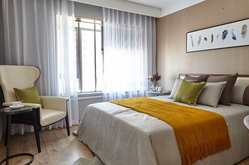 路過(guò)自己的臥室,進(jìn)去看看公公婆婆睡著了沒(méi)有:拉起的百葉讓光線(xiàn)更暗,臥室里淡淡的茉莉香與木本色的地面與家具都透露著自然舒適的感覺(jué)。