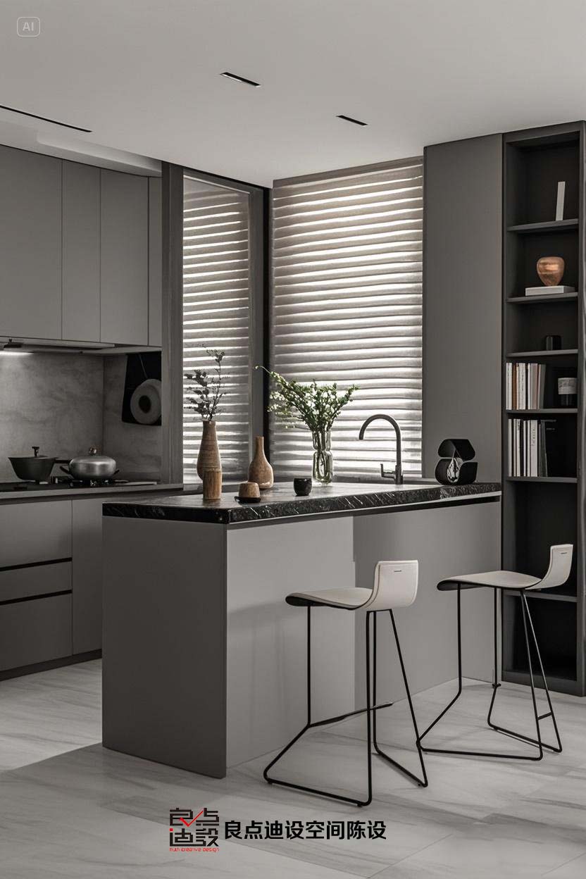 #現(xiàn)代簡約廚房 #高級感裝修 #廚房設(shè)計 #軟裝搭配 #家居美學(xué) #裝修靈感 #中島臺設(shè)計 #灰色系裝修 #良點迪設(shè)空間陳設(shè) #裝修干貨