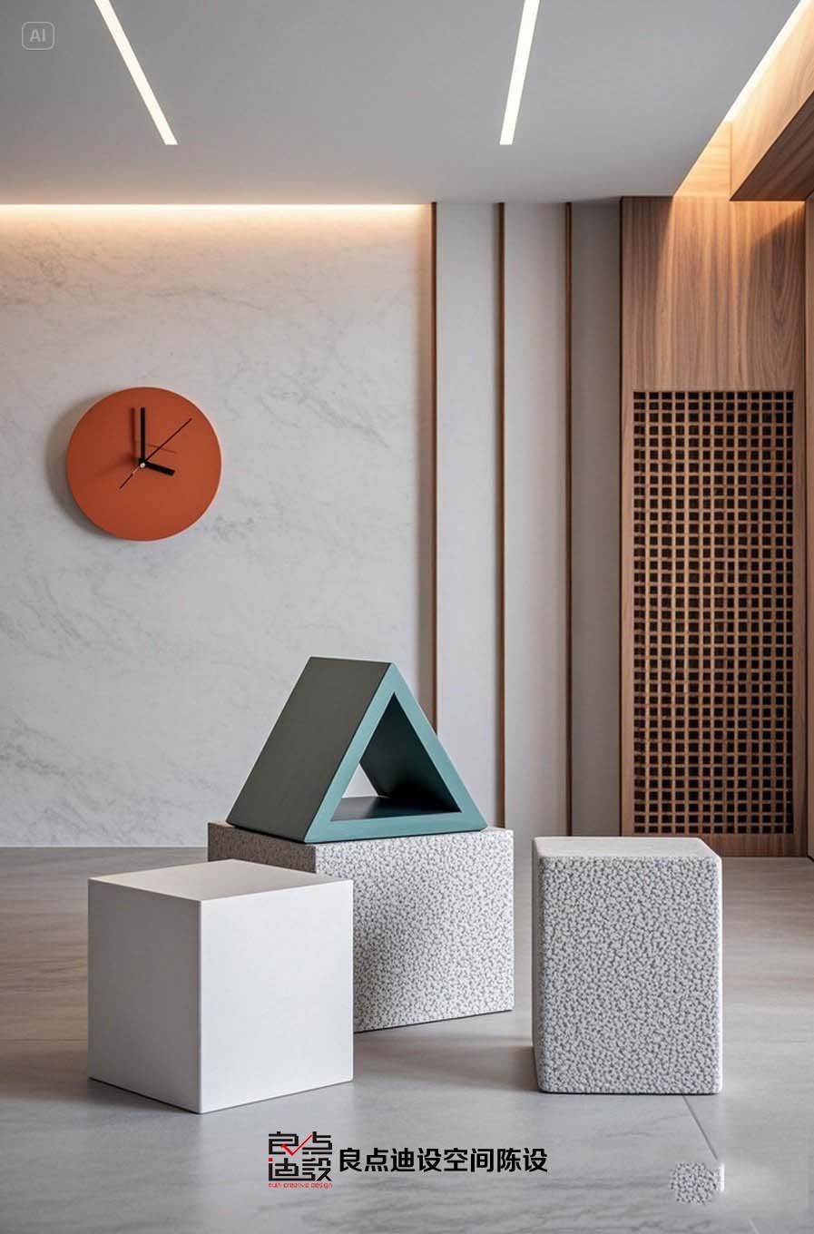 ?? 軟裝擺件會(huì)說話! 地臺(tái)上那幾個(gè)幾何體是靈魂!? 白立方純凈,鏤空三角靈動(dòng),材質(zhì)肌理還玩碰撞… “少即是多”玩得明明白白!不搶戲,但細(xì)看全是設(shè)計(jì)小心機(jī)??。