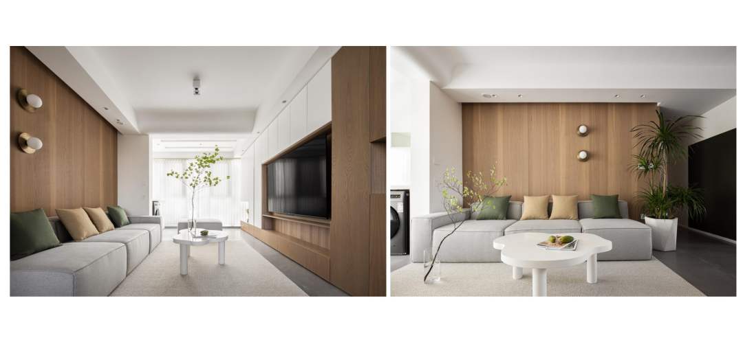 原始空間沒(méi)有做改動(dòng),入戶(hù)增加鞋帽收納柜,客廳家人休閑娛樂(lè)和會(huì)客的區(qū)域,整面電視柜滿(mǎn)足日常收納及書(shū)籍整理;餐廳區(qū)域滿(mǎn)足日常一家人的進(jìn)餐;陽(yáng)臺(tái)區(qū)域作為洗衣晾曬與休閑一體的生活休閑空間;從西向東的次臥依次作為長(zhǎng)輩房、兒童房使用;主臥空間作為業(yè)主的睡眠區(qū),同時(shí)滿(mǎn)足衣物收納;北次臥作為獨(dú)立書(shū)房使用。
