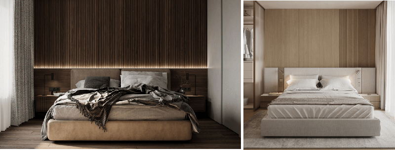 對(duì)于老人來(lái)說(shuō)***重要的就是睡眠,因此,老人房中的隔音一定要做好,這樣老人才可以睡好,其次,便是雙層窗簾的安裝,一層用于白天遮光,避免陽(yáng)光過(guò)于強(qiáng)烈,一層是晚上的隔光窗簾,保證室內(nèi)的睡眠環(huán)境,床頭柜***好做圓弧設(shè)計(jì),沒(méi)有菱角磕碰,床頭背景墻的線條燈,采用暖色燈帶,方便老人晚上起夜上廁所。