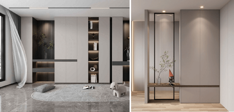 入戶玄關(guān)讓人眼前一亮,鞋柜底部留空,放鞋方便又美觀,鞋柜底部可以安裝聲控?zé)魩?,拿取鞋子?huì)更加方便,同時(shí),聲控?zé)魩б材芙o生活增加更多的趣味性,把換鞋凳組合到鞋柜里,做成一體的設(shè)計(jì)既能保持空間的美觀簡(jiǎn)潔,又能方便換鞋,也是一種比較流行的設(shè)計(jì),鞋柜中間留空,隨手置物很方便,也能讓玄關(guān)顯得沒(méi)有那么擁擠。