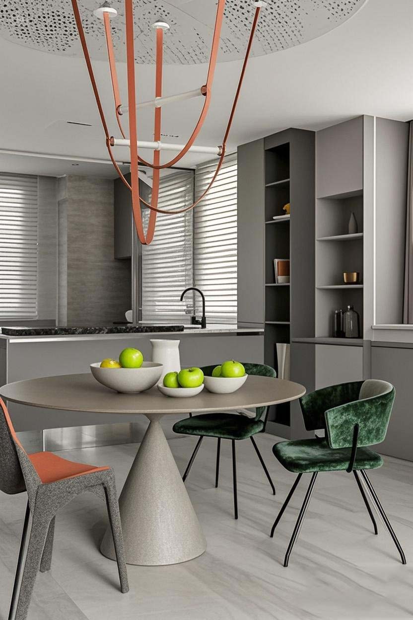 這套軟裝設(shè)計(jì)就組合拳誰(shuí)看誰(shuí)迷糊!灰橙綠配絕了,小廚房秒變雜志封面!??
